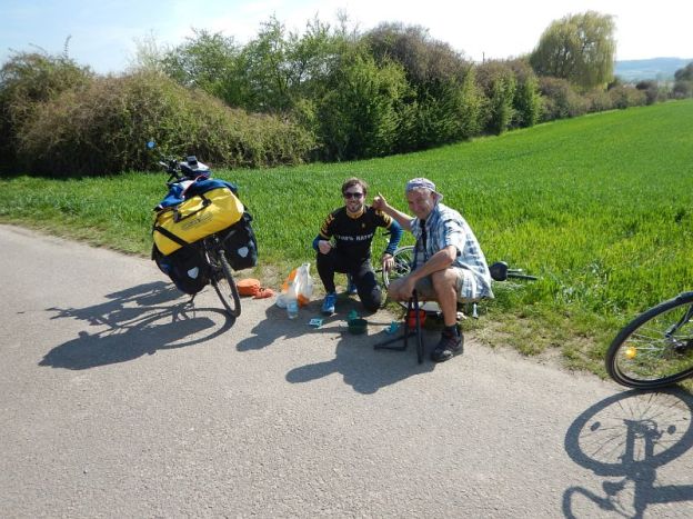 Das Allerbeste waren aber die Menschen, die ich bisher kennen lernen durfte. Insbesondere ein Pärchen aus Bremen, die mit ihrem Wohnmobil neben mir auf dem Campingplatz campten. Oder die zufällige Begegnung mit einem Fahrradfahrer, der eine Reifenpanne hatte und dem ich spontan beim Reifenflicken half.