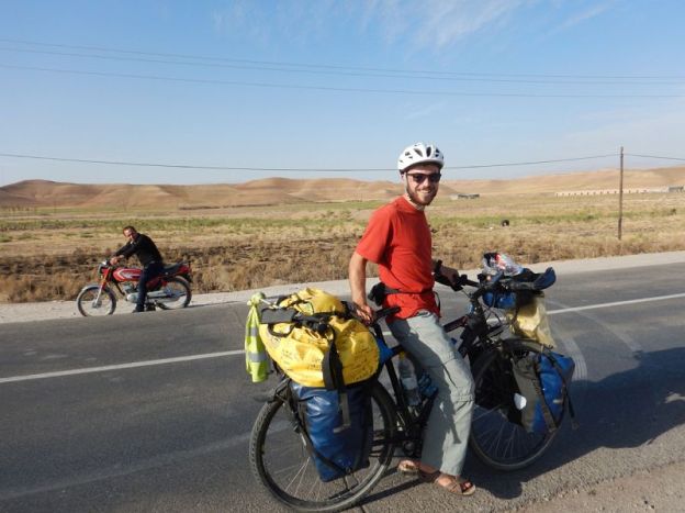 By then, my camp was established and I had just finished my cooking, when a night guard from a construction site nearby, detected me with the help of his dog and his searchlight. He told me I couldn’t stay there because there were snakes and scorpions. Instead, he offered me a place next to a construction cabin and helped me to move there. The next morning, the engineer of the building site arrived and I had some breakfast with him.